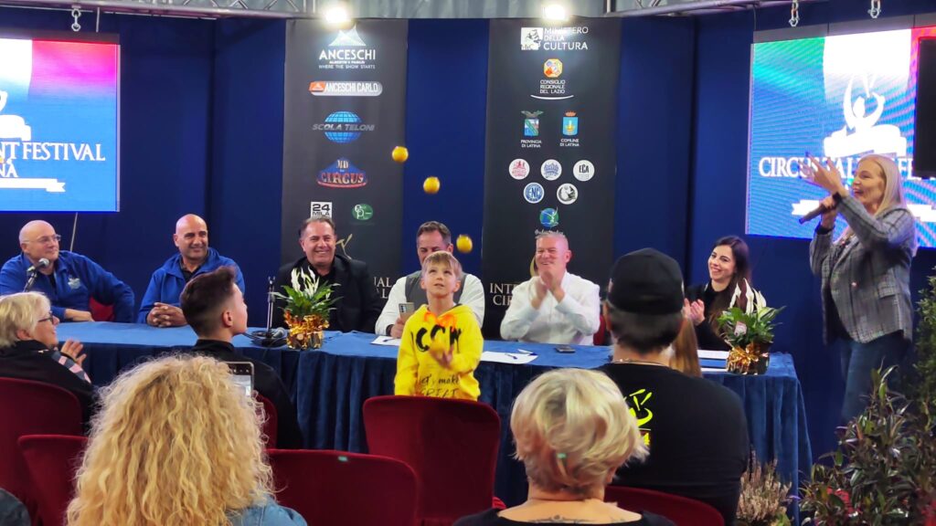 È stata presentata questa mattina la 3ᵃ edizione dell’Italian Circus Talent Festival, l’evento competitivo riservato agli astri nascenti del Circo. Al Tavolo  il Presidente dell’Italian Circus Talent Festival Fabrizio Montico, il Direttore Artistico del Talent Fabio Montico, l’Assessore al Turismo del Comune di Latina Gianluca di Cocco, il presentatore del Talent Davide Padovan, la  presentatrice del Talente Emily Ling, il Direttore di pista Tommy Cardarelli e due fra i più giovani partecipanti al Talent: Dmytro Onyshchenko solo nove anni e il quattordicenne Gabriel Dell’Acqua. Fra gli ospiti anche Valeria Vallone direttrice dell’Anfiteatro Academy. La 3ᵃ edizione dell’Italian Circus Talent Festival è una produzione New Cover e vede il contributo del Ministero della Cultura e le collaborazioni dell’International Circus Festival of Italy, dell’Ente Nazionale Circhi e del Comune di Latina.
